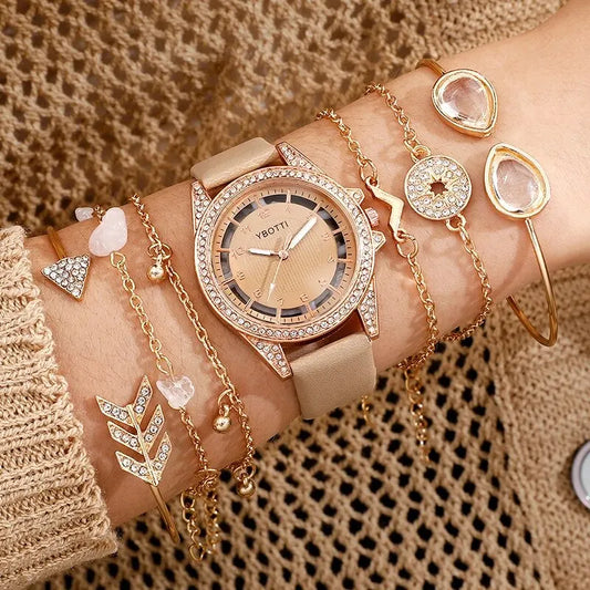 Women's Fashion Quartz Watch Luxury Khaki Leather Band Analog WristWatch Ladies Watch Women Dress Bracelet Set Reloj Mujer Clock