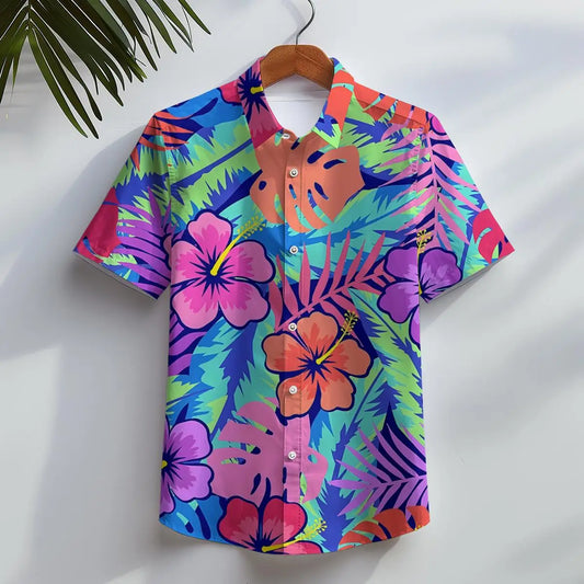 Hawaiian Shirt Men Beach Casual Short Sleeve Button Down Shirts Tropical Leaf Floral 3D Printed Clothing for Summer Vacation