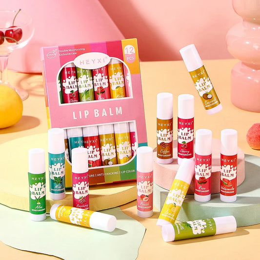 6/12Pcs Lip Balm Set Fruit Flavored 12Flavors Natural Lip Balm for Dry Cracked Lips Long Lasting Lip Care Products