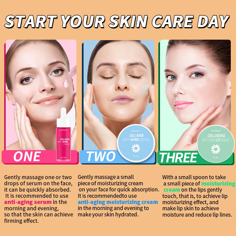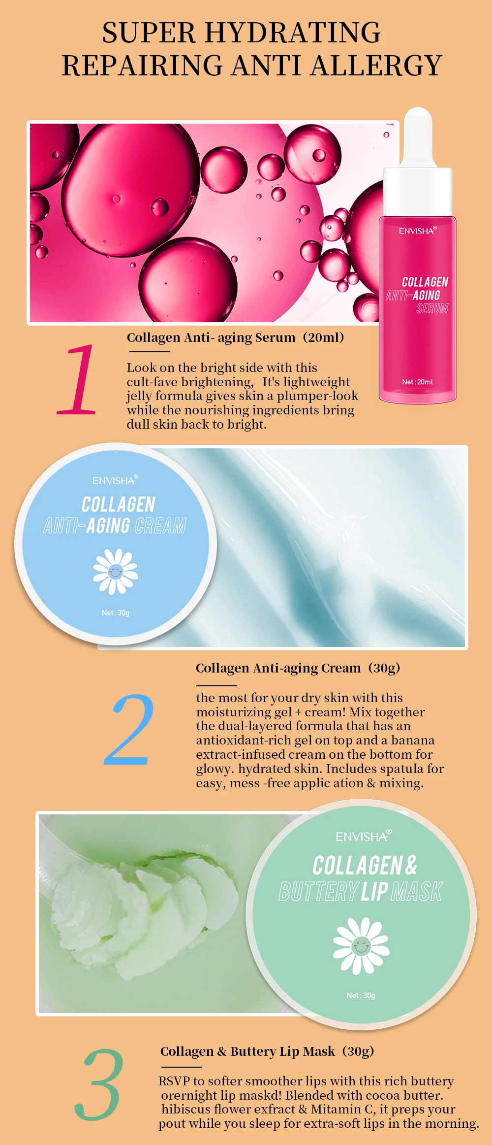 Face Skin Care Set Collagen Anti-aging Wrinkle Cream Hyaluronic Acid Lip Mask Retinol Serum Whitening Moisturizing Shrink Pores