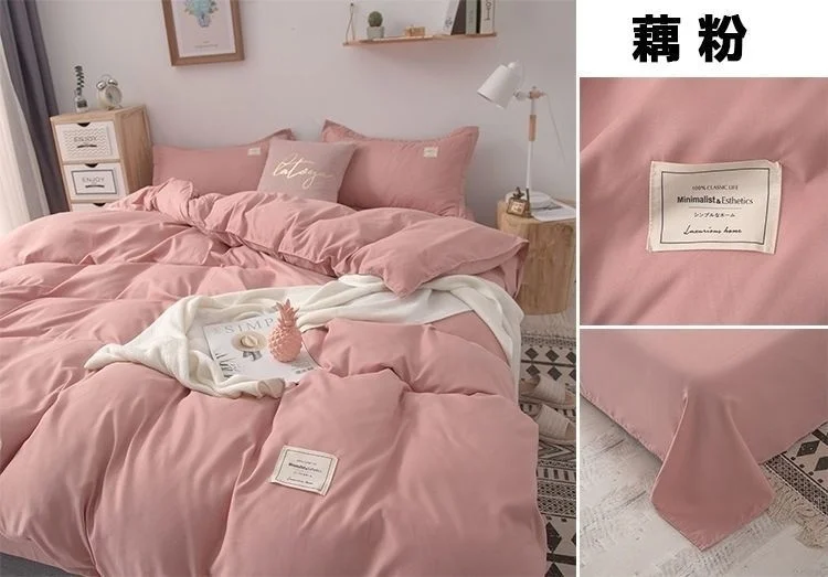 Simple Japanese Solid Color Pink Bedding Set Bed Cover Twin Full Queen Bed Linen Girl Women Polyester Bed Flat Sheet Pillowcase
