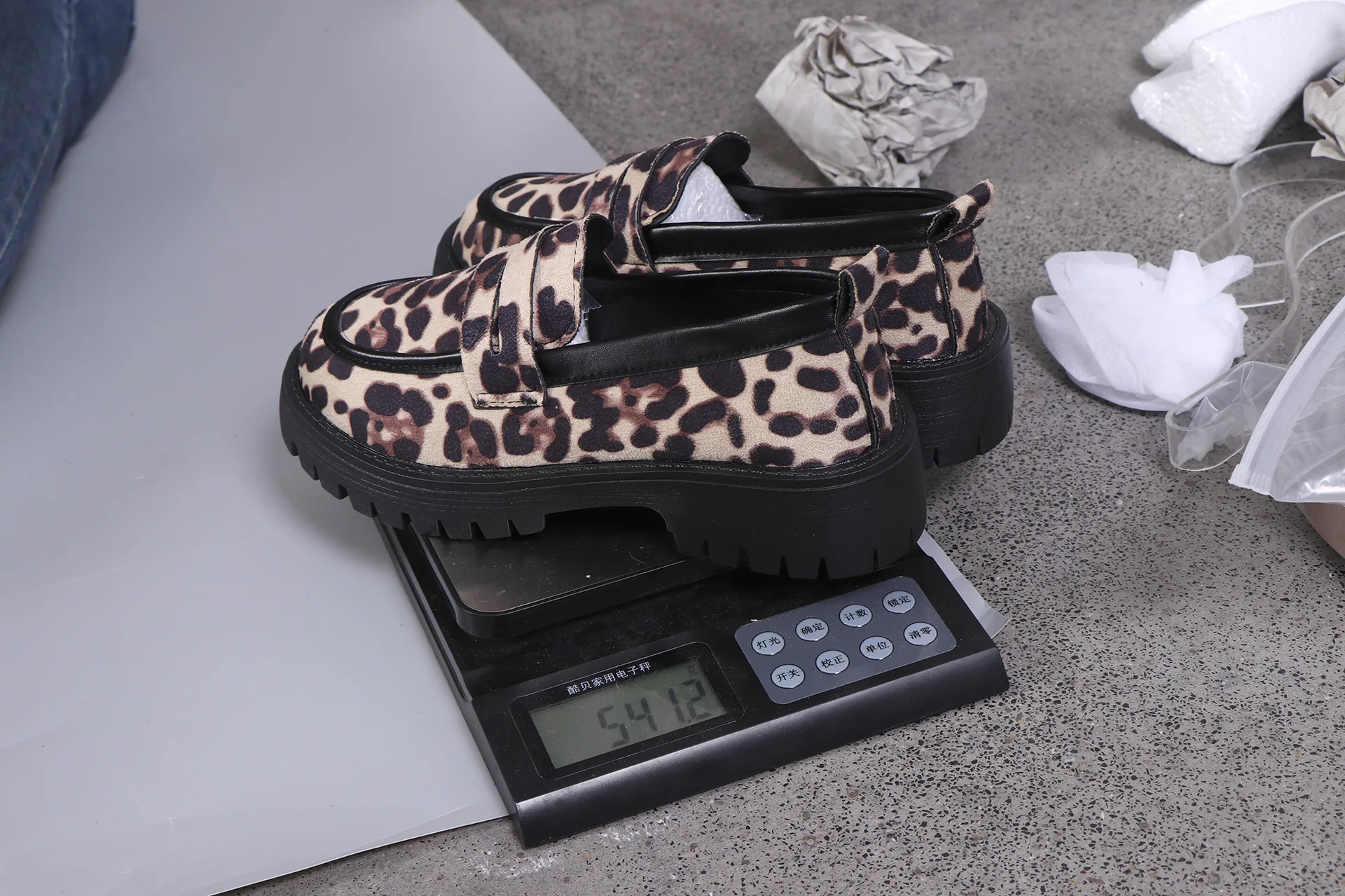 Women's Fashion Leopard Patchwork Slip-on Loafers Chunky Heel Platform Flats 2024 New Moccasins Casual Shoes Plus Size Zapatos
